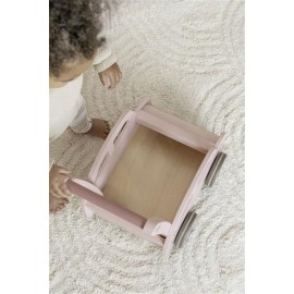 ¡Y listo! Embárcate en una aventura por el salón con este caminador rosa. Paso a paso aprenderás a caminar y este carrito te ayudará en el camino. Así que, acelera tu motor y finge ser el conductor de este coche con sutiles detalles florales y un toque de encanto vintage. El caminador de madera rosa no solo es útil para ayudar a su pequeño en los primeros pasos, sino que su diseño también funciona como un baúl de juguetes perfecto para su bebé. ¡Tu pequeño puede llenarlo con juguetes para jugar imaginativamente en el interior o llevarlo a sus aventuras a pie! Ideal para desarrollar el equilibrio, la coordinación y las habilidades motoras. Y gracias a las tiras de goma alrededor de las ruedas, no tendrás que preocuparte por el suelo mientras tu pequeño pasea por la habitación.