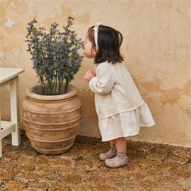 Diseñado siguiendo los principios del calzado barefoot, ofrece total libertad de movimiento desde el gateo, con una suela fina, flexible y antideslizante que favorece el desarrollo natural del pie. Su tejido cálido de algodón ecológico con certificación OEKO-TEX®, combinado con un interior suave y elástico, envuelve el pie como un calcetín, facilitando el calce y ofreciendo una sensación de abrigo y comodidad.