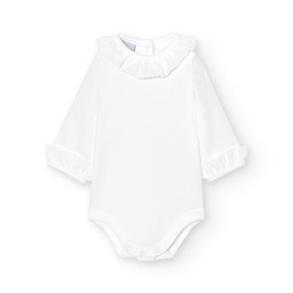 Los bodys con cuello volante aportan un toque distintivo. Con broches o corchetes en la parte trasera permitiendo abrir completamente por la espalda en body.