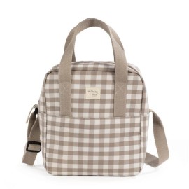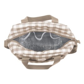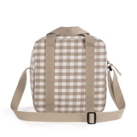 Bolsa térmica para biberones Caetana Sand de cuadros beige. Mantiene la temperatura durante 4 horas. También incorpora una asa larga para poder colgarla en el hombro y asa corta de mano. Gran calidad y mucho estilo. Fabricada en un material resistente y de fácil limpieza.