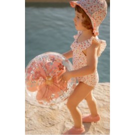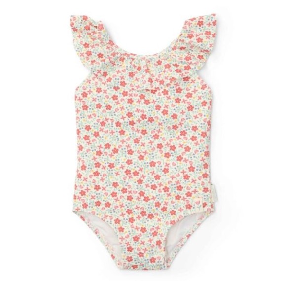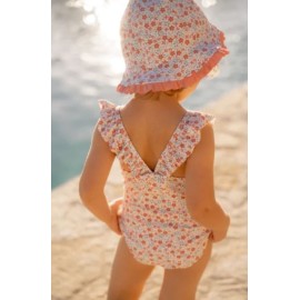 ¡Sumérgete en la alegría del agua! Ya sea por las olas rítmicas de la playa, la refrescante brisa marina o las aguas cristalinas de la piscina, este traje de baño te llevará con estilo. El traje de baño Sunny Flowers luce un fino estampado de pequeñas flores rosas entretejidas con delicadas ramas verdes. Para realzar el encanto, las correas de los hombros con volantes crean una silueta divertida y adorable.