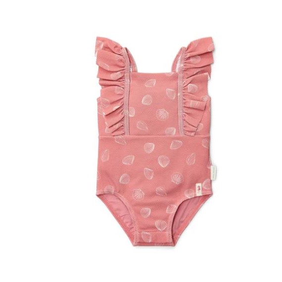 ¡Nos vemos en la playa! Con este precioso traje de baño serás la estrella que brilla en la orilla. Combina el hermoso diseño de Ocean Treasures con gran estilo y delicadeza. A tu pequeña diva le encantará este traje de baño en Lemonade Pink adornado con un divertido estampado de conchas marinas blancas. El ajuste es cómodo y los volantes en las bandas de los hombros le dan un toque sofisticado. El traje de baño, disponible en cuatro tallas, cuenta con prácticos botones a presión en la entrepierna para facilitar los cambios de pañal en las dos tallas más pequeñas, 62/68 y 74/80.