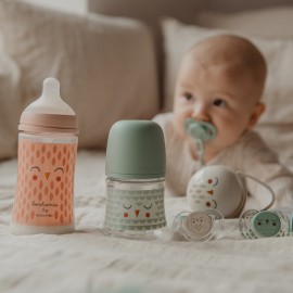 Descubra el biberón de cristal Bonhomia con cuello ancho y acompañado de unatetina de silicona anticólicos ¡SX PRO!