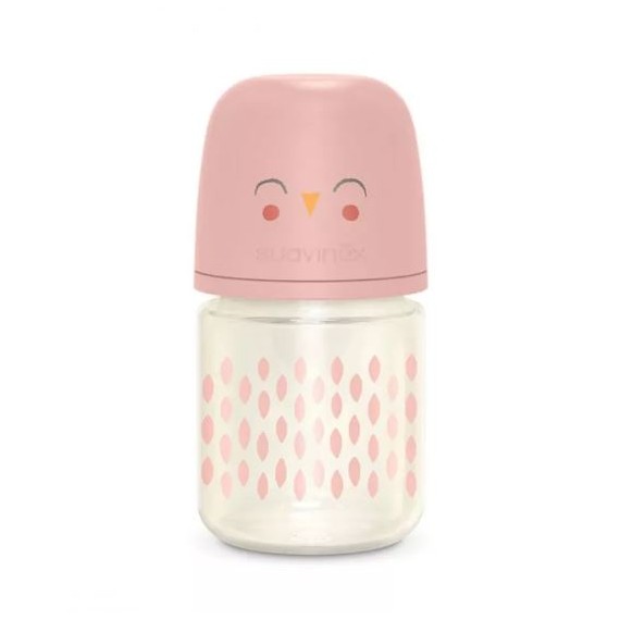 Biberón de Vidrio de 120 ml, con Tetina Fisiológica SX Pro de Silicona, de Flujo Lento +0 Meses. Con Válvula Anticólico.