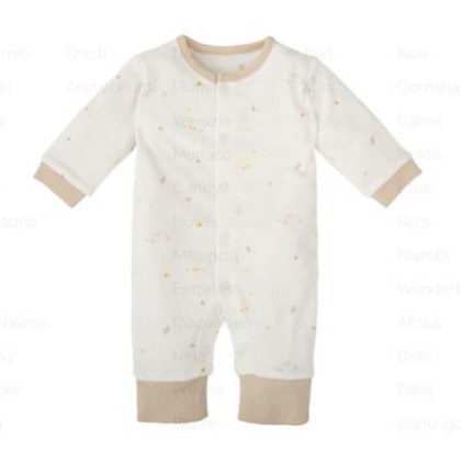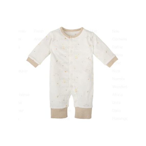 Composición: tejido 50% algodón orgánico y 50% fibras de bambú viscosa con suavidad para la delicada piel del recién nacido. Estampados con tintes hipoalergénicos para proteger la piel y evitar irritaciones. Textil con tratamiento antipilling para evitar la formación de bolitas. Mantenimiento del tejido: Lavado con agua fría o temperatura máxima de 30ºC. No usar lejía. Planchar con temperatura media.