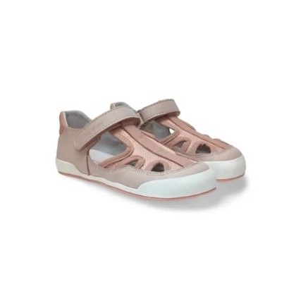 Sandalia cerrada barefoot, ideales para el día a día en esta temporada. Combinación de diferentes tonalidades de rosa y suela en tono blanco con detalle en rosa. Libres de refuerzos con parte delantera ancha para que los dedos estén libres y cómodos. Suela totalmente plana , libre de arcos, y muy flexibles. Con tira de velcro y plantilla extraible.