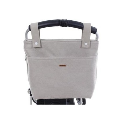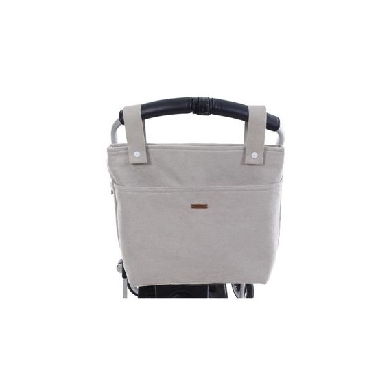 El bolso talega Camille de Uzturre se puede acoplar a cualquier tipo de cochecito y también puedes llevarlo en el hombro gracias a una tira que va en el interior.