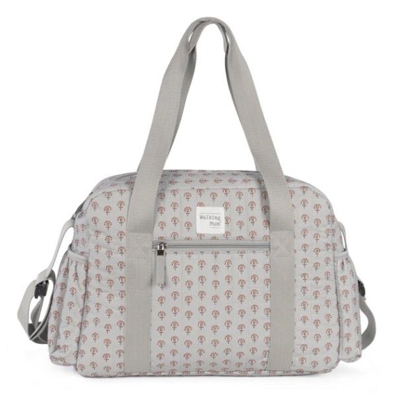 Bolso cambiador Indian Lotus con estampado de flores en tono gris para silla de paseo que incluye cambiador para bebe. Bolsa canastilla muy ligera, resistente y de gran capacidad para llevar todo lo necesario para el paseo del bebe. Tiene multiples bolsillos para poder tener todo ordenado. Dispone en el exterior de dos bolsillos laterales para botellas o biberones y un bolsillo con cremallera frontal. En el interior incopora un bolsillo plastificado para la ropa húmeda, un bolsillo térmico para biberones y dos bolsillos para lo que necesites tener más a mano. La bolsa tiene un sistema universal de fijación, con 2 asas cortas ajustables que facilita la colocación en cualquier modelo de silla de paseo. También incorpora una asa larga para poder colgarla en el hombro y asas cortas para cogerla con la mano. Gran calidad y mucho estilo. Fabricada en un material resistente y de fácil limpieza. Walking Mum protege a tu bebé utilizando los mejores tejidos, libres de colorantes azoicos y sustancias nocivas para la salud. Nuestra colección Walking Mum está diseñada con un particular sello de estilo urbano y moderno que no pasa desapercibido, para vestir diferente los paseos con tu bebé. Las bolsas de maternidad de esta línea son más sport y prácticas, especialmente pensadas en mamás y papás modernos que aprecian los diseños más actuales y en tendencia sin dejar de lado la calidad y la funcionalidad de los accesorios que complementan y hacen más cómodos todos los paseos con sus bebés. Especificaciones: Materiales: 100% algodón con tratamiento waterpfoof.
