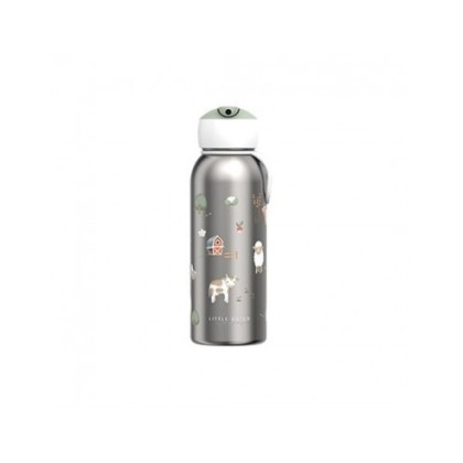 Botella isotérmica con mecanismo de abre y bebe. Fabricada con acero inoxidable de doble pared lo que mantiene los líquidos en su interior hasta 8 horas si están calientes o hasta 12 horas los fríos. El exterior de la botella permanece seco. Antifugas.Es posible rellenar la botella con bebidas carbonatadas, en ese caso el fabricante recomiendo quitar la caña de beber.