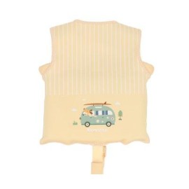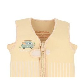 Descubre el adorable chaleco flotador de la colección Surf Van que cuenta con una cinta con cierre de seguridad para colocar entre las piernas con el fin de que el chaleco no se salga por la cabeza, en caso de tirarse al agua de manera vertical o cuando, simplemente, está flotando en el agua.Además está protegida con neopreno para evitar rozaduras entre las piernas.