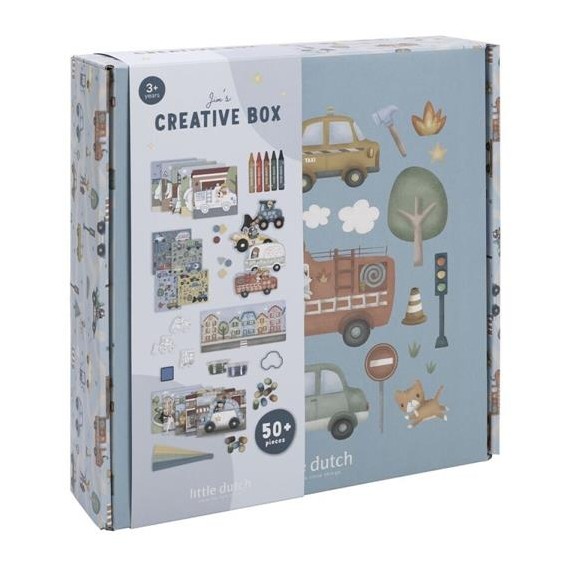 Caja de creativas inspirada en el muñeco Jim , todo lo necesario para empezar a crear de forma inmediata. Ej: pegatinas, papel para dibujar, crayones de cera, foam para modelar, sellos...