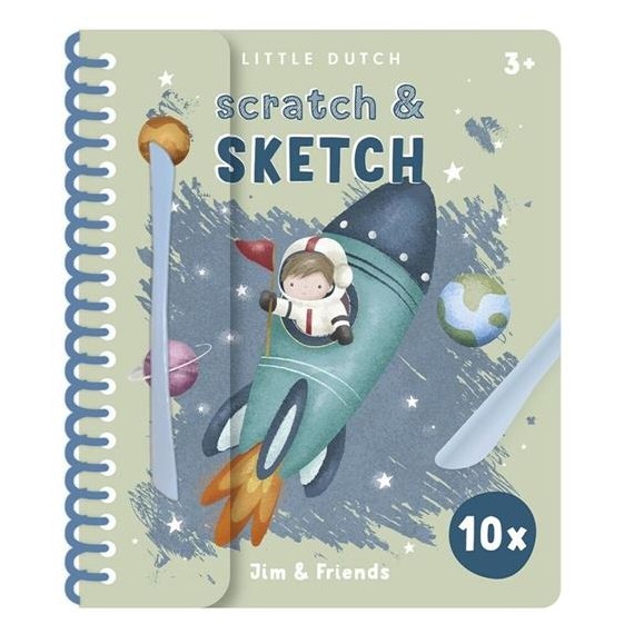 Libro con anillas para rascar Jim & friends. Contiene 10 tarjetas para rascar, 8 páginas para colorear y una plantilla plastificada. Con tapa dura, ideal para jugar en casa o para llevar.