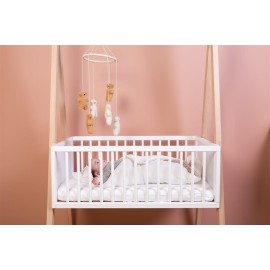 La cuna está hecha de una sólida estructura de madera para una máxima seguridad. La cuna se puede utilizar para bebés de hasta 6 meses y, a partir de entonces, se puede transformar fácilmente en un perchero tipi que se puede utilizar durante toda la vida. ¡Muy práctica!