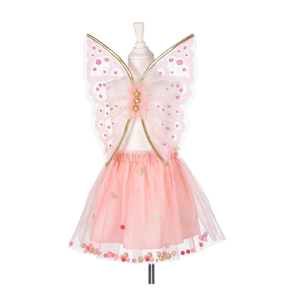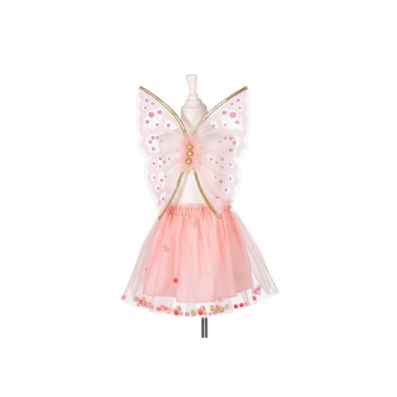 Adorable disfraz de Souza, que representa a un hada en color rosa y con finos detalles en purpurina. El disfraz consta de lo siguiente: