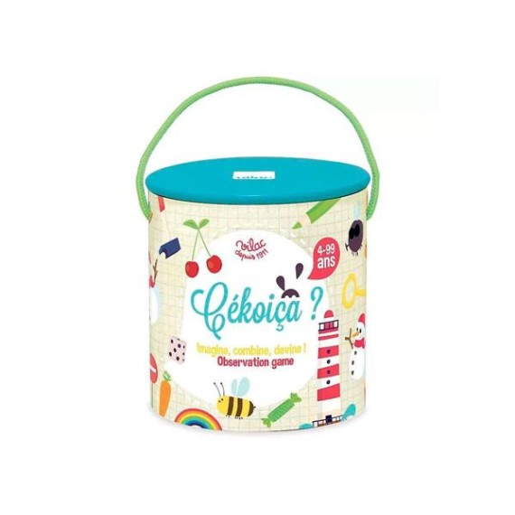 Cékoiça es un juego de observación y velocidad en el que tienes que ser el más rápido en adivinar las palabras. Un fantástico juego educativo para ayudar a tu hijo a desarrollar su imaginación y creatividad. Este divertido juego viene con un reloj de arena, 100 cartas y 250 formas de madera. El objetivo es recrear la imagen de la tarjeta y conseguir que los demás jugadores la adivinen en menos de 1 minuto utilizando las formas geométricas disponibles. ¡En sus marcas! ¡Preparados! Crear!