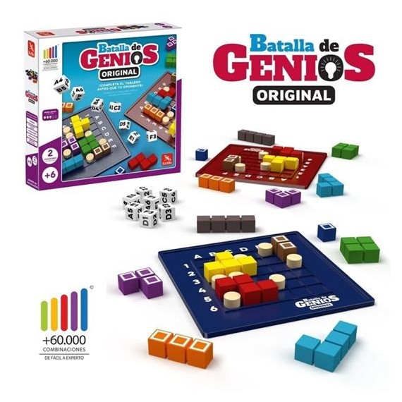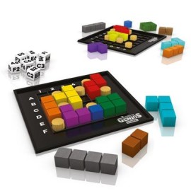 Reta a tu oponente a completar el tablero antes que tú. ¡Sé el más rápido en resolverlo! Existen 62.208 combinaciones posibles ¡Y siempre hay una solución! Completa la cuadrícula con las nueve piezas de colores, una vez que se hayan colocado los siete bloqueadores en las posiciones que indican los dados.