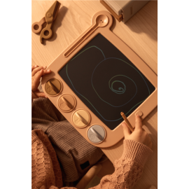 Cuando el dibujo esté asegurado, el niño podrá seguir dibujando, pero el botón frontal no borrará la pantalla.