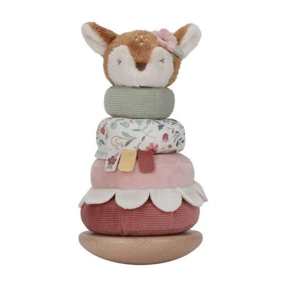 ¡Apila los anillos en la base mecedora y deja que el ciervo baile y gire! Es todo un desafío apilar los anillos sobre una base de madera que se balancea hacia adelante y hacia atrás. Sin embargo, el adorable ciervo te anima a persistir y lo celebrará con un pequeño baile una vez que se complete la pirámide. Cada precioso anillo presenta un diseño único inspirado en la colección Fairy Garden. Este apilador de anillos oscilantes está diseñado para mejorar la coordinación ojo-mano a través de un juego práctico y divertido. ¡Que comience la aventura del apilamiento!