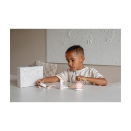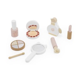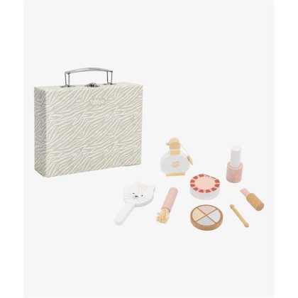 Aplicar sombra de ojos, brocha en polvo, esmalte de uñas y un poco de lápiz labial. ¡Es muy divertido! Este set incluye incluso una botella de perfume. ¿Hecho? Entonces tu hijo podrá comprobar si todo se ve bien en el espejo. ¡La imaginación de la niña se volverá loca con este set de maquillaje de madera! El ingenioso estuche hace que sea fácil de llevar a todas partes.
