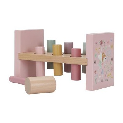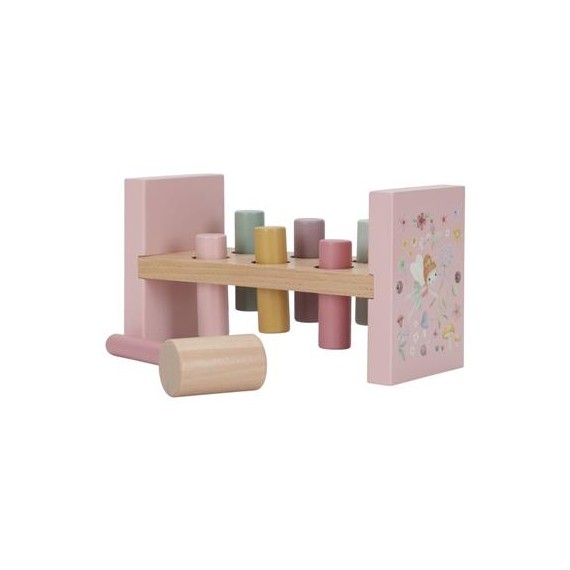 ¡Toc, toc, toc! Usa el mazo para golpear las 6 clavijas de colores en el banco de madera y explora la magia del Jardín de las Hadas. ¿Terminaste de golpear? ¡Gira el banco y comienza de nuevo! Este es un muy buen ejercicio para el desarrollo de las habilidades motoras que seguramente mantendrá a tu pequeño entretenido por un rato.