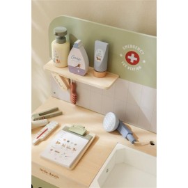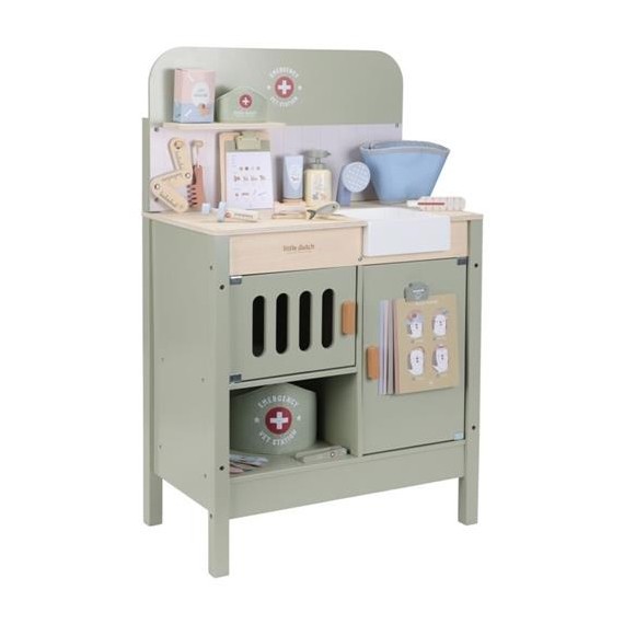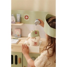 ¿Cuidas bien de peluches y mascotas de juguete enfermas? Con esta amplia clínica veterinaria de madera, tu pequeño podrá sumergirse por completo en el rol de un veterinario de verdad. El set contiene todo lo necesario para cuidar mascotas, como una ducha retráctil con lavabo, un peine, un termómetro, una jeringa y vendas. También incluye una diadema de tela y un clip especial para mostrar ilustraciones médicas y radiografías. ¡Hora del siguiente paciente!