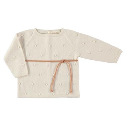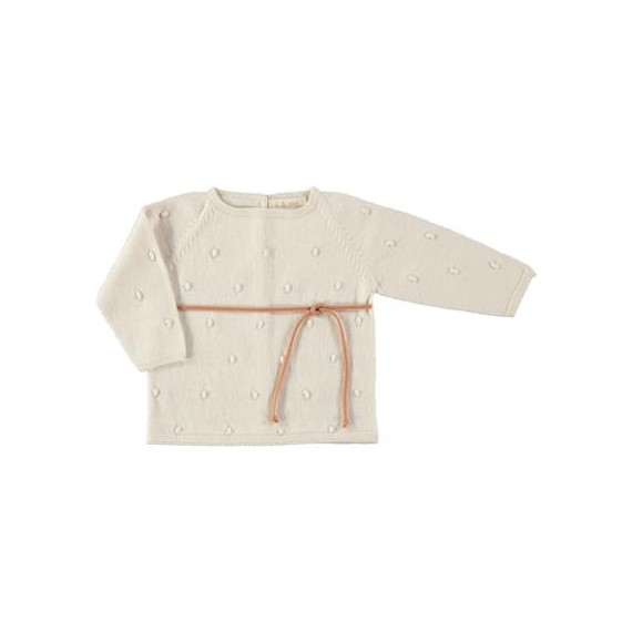 Jubón fino en tejido chickpea de punto 100% algodón orgánico extra suave de color crema con lazada decorativa en el frontal. Cierre abotonado en la espalda para facilitar el cambio del bebé