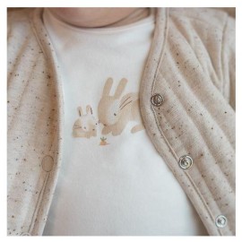 ¡Dulces conejitos! La camisa de color blanquecino presenta dos lindos conejitos y está hecha de un encantador y suave algodón orgánico. La camisa tiene botones de presión en un hombro para vestirse y desvestirse fácilmente. La camiseta tiene etiquetas con el logo de Little Dutch y el ícono de la zanahoria. Combina la camisa con unos bonitos pantalones y un cárdigan de nuestra colección para bebé a juego. Disponible en tallas 44, 50, 56, 62, 68 y 74.