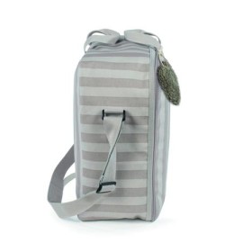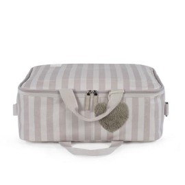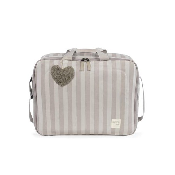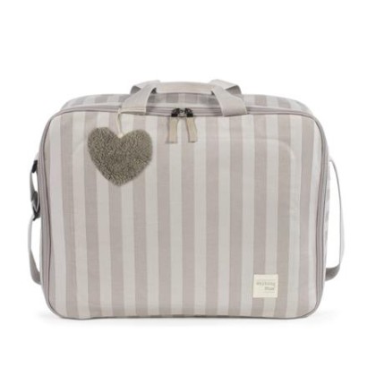 La maleta de bebé Sintra de rayas beige es un bolso especialmente diseñado para el momento más importante del embarazo, que es la llegada de tu bebé, momento en el que hay un montón de cosas que preparar. Por esto necesitas un espacio cómodo para transportar todo lo necesario para ti, el padre y el niño. Esta maleta de bebé es el modelo perfecto para cubrir todo lo que no puede faltar en este día tan especial. Es cómoda, ligera y manejable con dimensiones rectangulares y apertura práctica para tener todas tus necesidades cubiertas. Cuenta con cierre seguro de cremallera en ambas direcciones que facilitan su apertura, incluye una correa larga para llevar colgada en el hombro y asas cortas de mano.