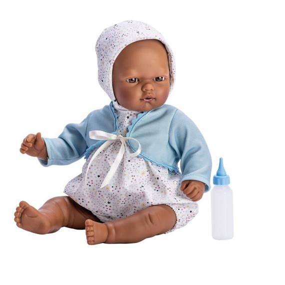 Conoce a Oli Mulata, la muñeca más achuchable de nuestra colección. Con sus 30 cm de altura, Oli se destaca por su cuerpo de tela suave y sus extremidades de vinilo, lo que la hace extremadamente ligera y perfecta para abrazar. Su diseño asegura que sea cómoda y segura para las manos pequeñas de los niños, proporcionando una experiencia de juego tierna y agradable.