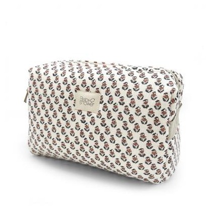 Neceser amplio para los productos de cuidado de la piel del bebé. Flexible para que ocupe menos espacio. Confeccionado en tejido de gasa de algodón 100% certificado GOTS. Interior plastificado de color blanco y bolsillo lateral. Amplia capacidad.
