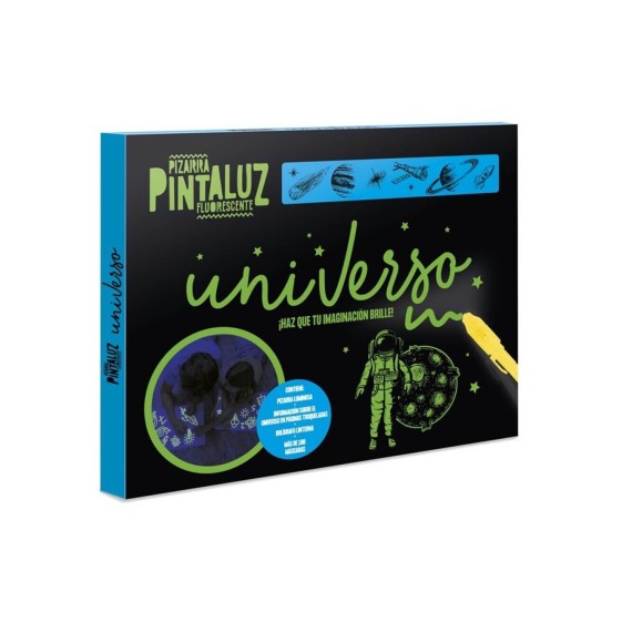 Conoce el fascinante universo con este libro. Con su pizarra luminosa podrás realizar fantásticos dibujos gracias a las páginas troqueladas y a las máscaras. Y con su bolígrafo linterna podrás generar dibujos en la pizarra fotosensible que tardarán varios minutos en desvanecerse.