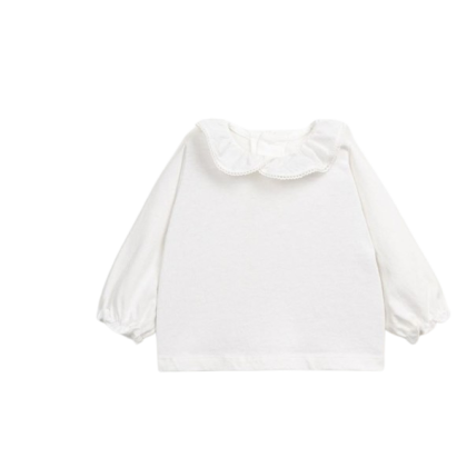 Esta camisa de punto está confeccionado en una mezcla de algodón orgánico y algodón reciclado. Presenta mangas largas, un cuello fruncido, puños elásticos y una abertura en la espalda con botones de coco.