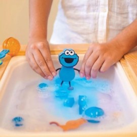 Introduce en el dorso de Cookie Monster uno de los cubos y hazlos brillar dentro del agua. Perfecto compañero de juego, en una mesa sensorial para trabajar la relación causa/ efecto, fomentando la sicomotricidad fina y el reconocimiento de colores. Pero no pierdas la oportunidad de darte un baño relajante con tu personaje. Hasta a los peques más rebeldes al agua les fascinará.