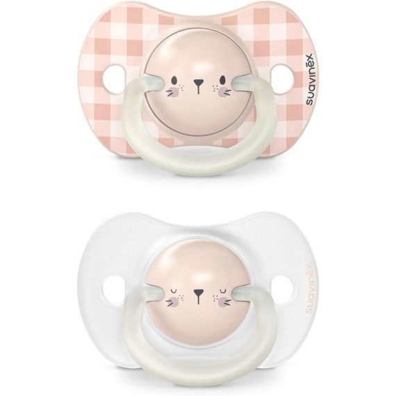 Pack de chupetes de silicona, talla 6-18 meses, con anilla que brilla en la oscuridad. ¡Muy fácil de encontrar por la noche en la cuna sin encender la luz!