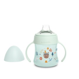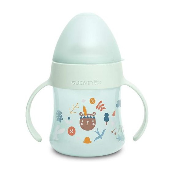 Incorpora asas adaptadas a manitas pequeñas, la rosca con asitas es adaptable a cualquier biberón de Suavinex, exceptuando el biberón Zero.ZeroTM.
